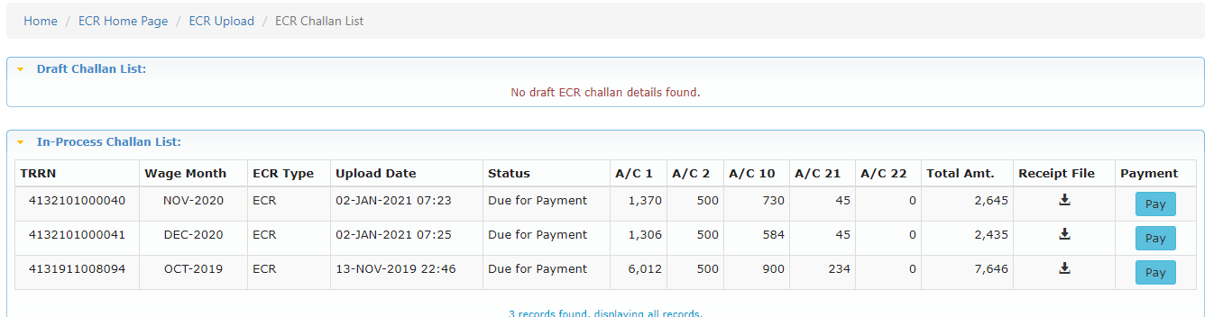 All data have been taken from Unified Portal of EPFO for making knowledge for Employer towards making payment. We do not copy or illustrate any other data / content of Employees Provident Fund Organisation data as per Copyrights Act.